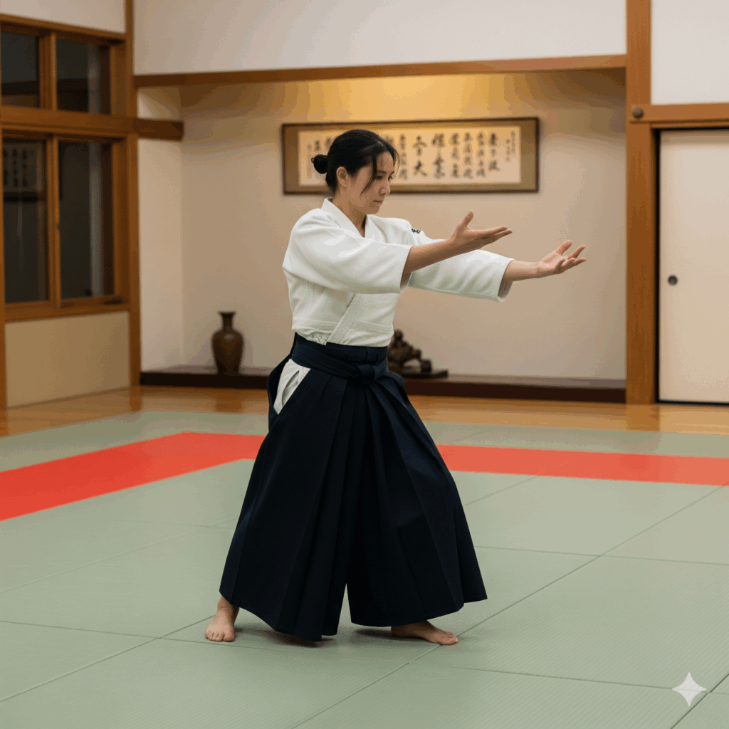 La circularidad no es un concepto poético, sino una táctica de supervivencia. Para sobrevivir a un ataque con una espada, una fuerza lineal y cortante, un guerrero no podía chocar de frente; en su lugar, debía moverse de forma circular para “salir de la línea de ataque” y posicionarse en un punto ciego del oponente. Ueshiba adaptó esta sabiduría ancestral a una era sin espadas, traduciendo los movimientos del sable a técnicas de luxación y proyección que permiten a un practicante desarmar la situación sin necesidad de usar la fuerza bruta.13 Las técnicas de agarre, por ejemplo, tienen su origen en las trayectorias de un sable.4 El bokken (espada de madera) se utiliza en la práctica moderna para que los estudiantes comprendan el origen de los movimientos más básicos del Aikido, reforzando la conexión con sus raíces marciales.19