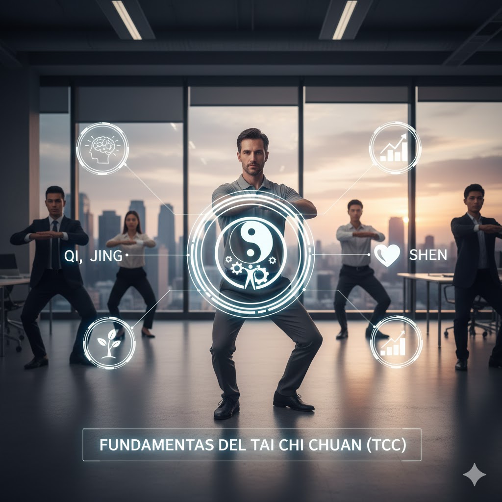 El TCC funciona como una “meditación en movimiento,” exigiendo la integración constante de la mente, el cuerpo y la respiración controlada.1 Esta práctica promueve la relajación activa, la conciencia y la intención 6, constituyendo un contrapunto eficaz al estado de hiperactivación constante y el enfoque fragmentado que caracteriza al trabajador moderno.