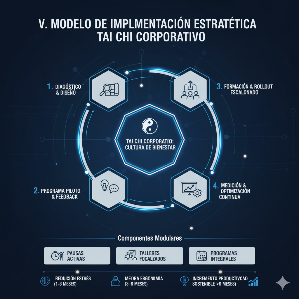 La recomendación final para cualquier organización interesada en el TCC es adoptar un modelo de implementación modular y medible. Se debe priorizar la inversión en la cualificación del instructor, garantizando que el programa sea adaptado estilísticamente a las necesidades ergonómicas y demográficas específicas de la plantilla. Al integrar la práctica de TCC, las empresas no solo ofrecen un beneficio de salud, sino que cultivan una cultura de armonía y conciencia que se traduce directamente en una mayor eficiencia operativa y una ventaja competitiva en la retención del talento.
