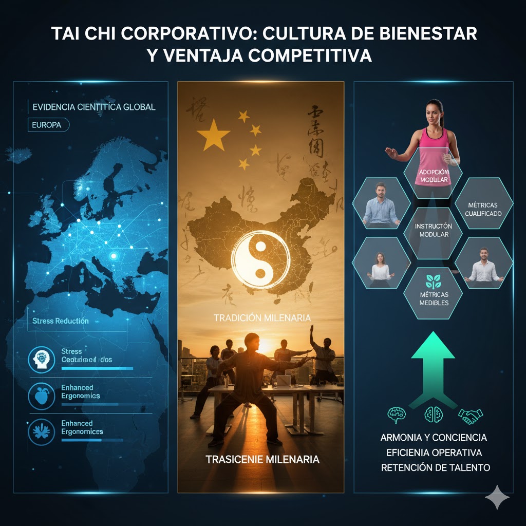El Tai Chi Corporativo se erige como una estrategia de bienestar ocupacional sólidamente basada en la evidencia científica global, con estudios recientes en Europa y una tradición milenaria en China que respaldan su eficacia en la mitigación del estrés psicosocial, la mejora de la ergonomía y el aumento de la resiliencia cognitiva.