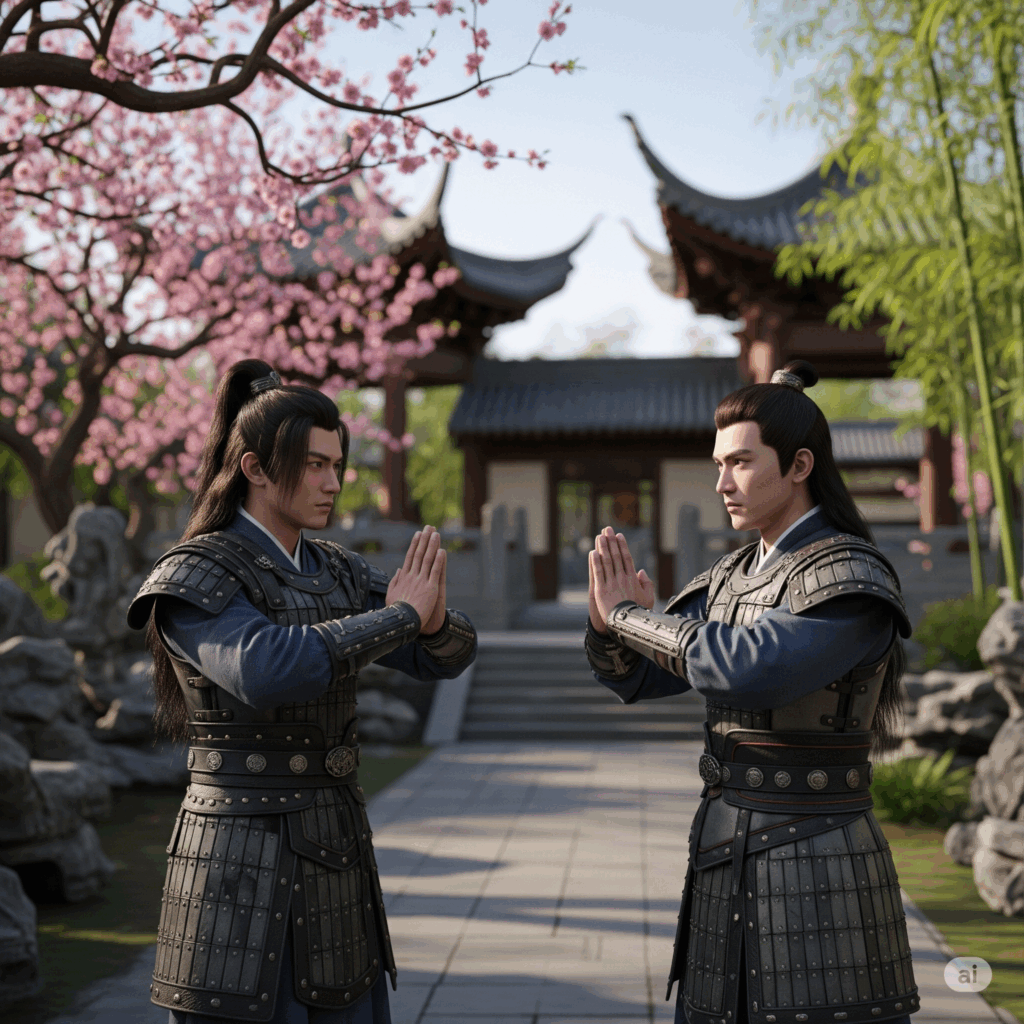 Han Shu (汉书) registra un caso en el que el General Zhou Bo, al encontrarse con el emperador, realizó un saludo militar mientras sostenía su arma en la mano derecha, cubriéndola con la izquierda. Declaró: “介胄之士不拜,请以军礼见” (Los soldados con armadura no se inclinan, por favor, permítanme presentarme con etiqueta militar).14 Este relato histórico vincula directamente el saludo con la necesidad práctica de mostrar respeto mientras se está armado. El acto de cubrir la mano derecha que sostiene el arma con la mano izquierda simbolizaba intenciones pacíficas y transmitía que no se ocultaba ninguna arma ni estaba lista para su uso inmediato.2 Este aspecto práctico de demostrar no agresión es una conexión directa y poderosa con su herencia militar.