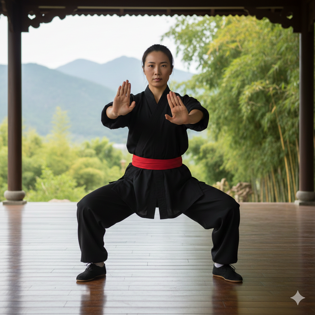 • Forma de entrenarla: El método tradicional es el Zhan Zhuang, manteniendo la postura durante periodos prolongados. Un estándar razonable para un practicante serio es de cinco minutos continuos.2 Se puede entrenar también con peso adicional o realizando golpes de puño (Ma Bu Chong Quan) para integrar la estabilidad inferior con la acción superior.16