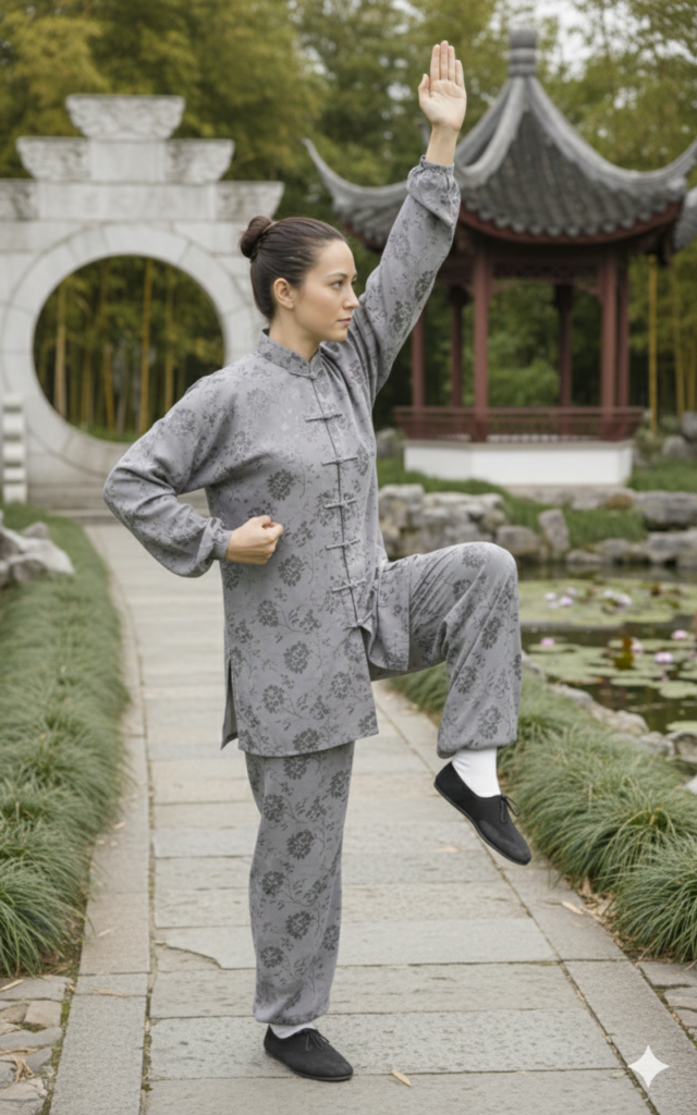 • Tui Fa (Patadas de Calentamiento): 10 patadas frontales rectas (Zheng Ti) y 10 laterales (Ce Ti) con cada pierna para ganar rango dinámico.10
